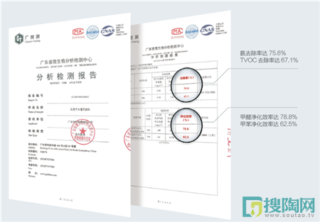特地·負離子瓷磚是一款可產生負離子、凈化空氣的健康瓷磚,為用戶創造更健康宜居的空間環境,可強效除醛,甲醛去除率達78.8%,甲苯凈化率達62.5%,同時,該負離子功能產品由中國人民財產保險承保。