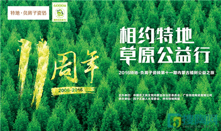 除此之外,特地從事多項公益項目,讓更多的人融入愛的殿堂里,也把愛傳給更多的人。馮董表示:“作為一個企業,特地只想為社會多做一點。”自2006年起,特地率先在行業中啟動 “內蒙古四子王旗”活動,開辟6000畝的“特地綠墾基地”綠化工程,經過11年的不懈努力,特地“綠墾基地低碳林”為內蒙建立起一道綠色的屏障。雖已完成十年之約,但特地公益事業永不止步,我們將這份企業責任感進行到底。