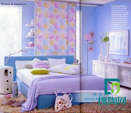 兒童房紫色與藍色搭配,設計使之浪漫而又不失硬朗,溫馨而又不的時尚感。