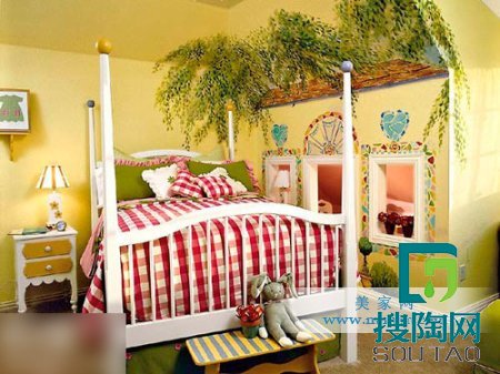 這一款兒童臥室裝修效果圖,適合3--6歲的孩子,這個階段的孩子正是開啟想象力,開啟大腦思維的重要階段,把臥室裝飾的具有想象力,對于開發孩子的大腦有著很大的意義。
