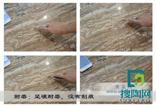 在實際使用中,瓷磚經(jīng)常會受到摩擦,可能會產(chǎn)生刮痕。小編用劃刀在法恩莎瓷磚臻·海紋玉表面用力劃刮,發(fā)現(xiàn)瓷磚表面沒有任何刮痕,亮麗如新。
