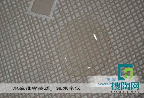為測試瓷磚的吸水性,小編把水倒在法恩莎瓷磚臻·海紋玉背面,發(fā)現(xiàn)水液沒有任何滲透、吸收擴散的現(xiàn)象,可見這款瓷磚的吸水率非常低。