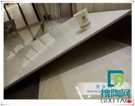 為了驗一驗這款磚的防滑性,小編把瓷磚放在40度的斜坡上,把水灑在瓷磚表面,并把裝有半杯水的水杯放在上面,在水的潤滑劑下瓷磚也沒有往下掉的跡象,可想這款中宏陶瓷阿爾卑斯系列瓷磚的防滑性能非一般。
