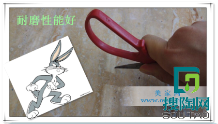 瓷磚是否耐磨關系到瓷磚的使用壽命,評測員在現場找來一把銳利的剪刀,來回劃割瓷磚表面。卡諾爾“晶拋大理石Ⅱ代”瓷磚并無任何損傷,結果證明此款產品并不懼怕利器劃割。平時愛穿高跟鞋的女士放心啦,您的鞋跟不會給這款愛磚造成影響。