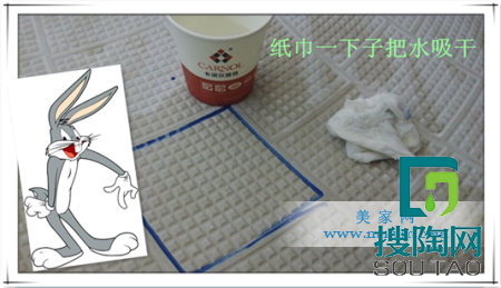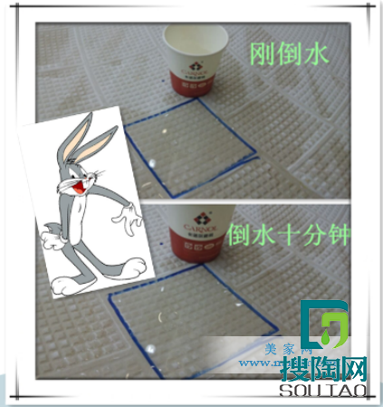 我們知道好的瓷磚吸水率是非常低的。一般瓷磚吸水主要是磚的胚體,如果胚體吸水,它會把水泥的水垢直接吸進去,當家里拖地或者倒水在地下,水垢會從瓷磚邊滲進去會直接吸進底胚里面,底胚會越吸越多,就會從表層露出來,非常難看。但是這款卡諾爾“晶拋大理石Ⅱ代”瓷磚,我們可以通過測試看到,它的吸水率非常的低,把水倒在瓷磚反面,過了一會兒去看,水還是附著在表面,沒有被吸進去,用紙巾一擦,就干凈了,完全沒有滲漏的現象。