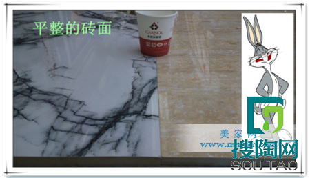地面上鋪的也是卡諾爾的瓷磚,為了驗證卡諾爾“晶拋大理石Ⅱ代”瓷磚表面的平整度,我們請工作人員把兩塊瓷磚平放到地面上,上圖即是瓷磚平放在一起的圖片,由此可見這兩款瓷磚的平整度都達到了一個很高的標準,如果這兩款瓷磚的平整度稍微有一點點凹凸的問題,都無法那么平整,可見卡諾爾瓷磚的技術高超。
