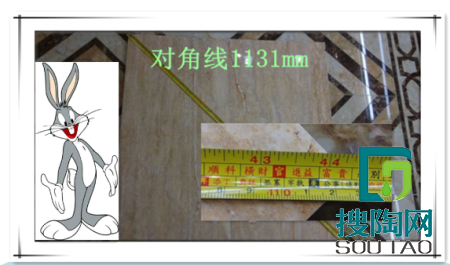 根據瓷磚國家標準,瓷磚的長寬、對角線尺寸偏差不得超過±0.5%,通過小編實測,卡諾爾“晶拋大理石Ⅱ代”瓷磚長寬800×800mm,對角線1131mm,尺寸非常標準。