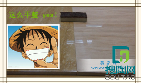 瓷磚產品測評過程中,平整度測評也是非常重要的一項,為了測一測這款金朝陽美國•紅沙巖瓷磚,小編把小磚塊平放在兩塊平放在一起的瓷磚面上,水平線的視線去觀察,發現這款瓷磚的平整度良好,這下,消費者也大可放心購買了。