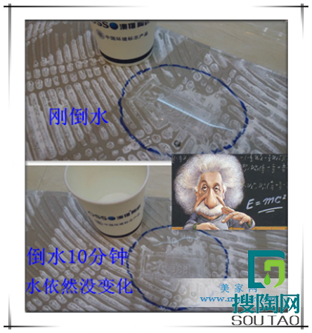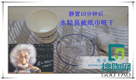 檢驗瓷磚的吸水性的很簡單,在瓷磚的背面倒小許的水,靜置5分鐘,觀察水分是否會被很快吸收,不吸水或是吸水速度很慢的瓷磚吸水性比較低,質量較好。小編進行吸水性測試,靜置后用紙巾擦去水份,水很快被吸干了,基本無擴散滲透。