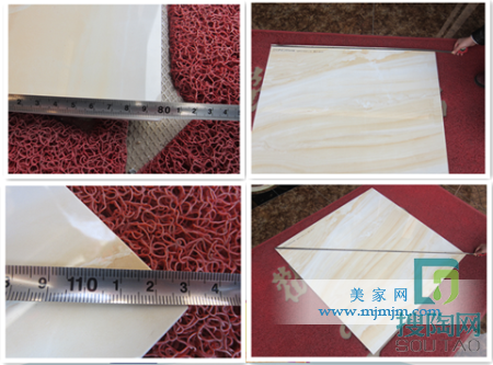 實測此款瓷磚尺寸為800×800mm,這款瓷磚的尺寸大小、平整度、直角度都沒有問題。實際尺寸誤差并不大,可見該瓷磚的鋪貼效果非常好。