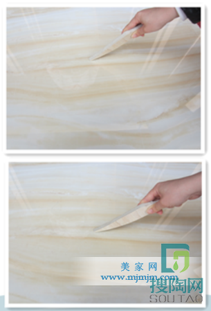 為測試該款瓷磚的耐磨度,測評人員用刀對瓷磚表面進行劃擦。得到的結果是,瓷磚表面并沒有任何磨損,可見這款瓷磚非常耐磨。