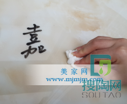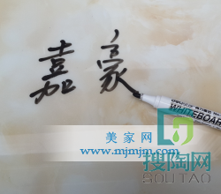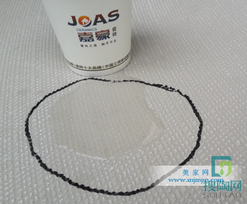 美家網小編點評:瓷磚是將要陪伴我們很長歲月的家裝飾品,而我們每個人都想我們的家住上個四五年后依然潔凈如新,所以如何挑選一款耐污性的瓷磚是我們要做的必不可少的工作。那其實做一個防污測試也是非常簡單的,各位跟隨小編來吧!首先,小編用一支黑色油性簽字筆在瓷磚上寫上“嘉豪”兩個大字,待字體干透,用紙巾輕輕擦拭,發現本來漆黑如斗的大字被小編非常輕松簡單快速的清除干凈,因此在小編看來,這款瓷磚在家居清潔好幫手中,舍我其誰!
