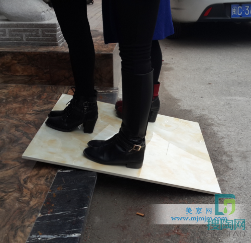 美家網小編點評:在抗壓測試過程中,我們先把瓷磚放在斜坡上,然后讓嘉豪瓷磚的兩位工作人員跟美家網小編站上去,期間我們看到三位工作人員非常穩定地站在上面,并無下滑的痕跡,再往下看“昆明皇玉”晶鉆石,沒有開裂的情形出現,想想我們的三位工作人員加起來都有300多斤呀!所以如此防滑、安全、抗壓強的瓷磚你值得擁有。