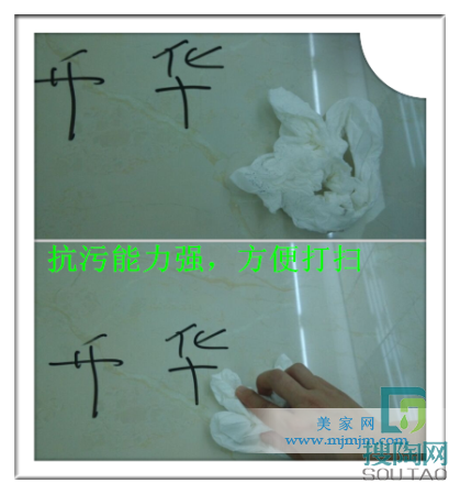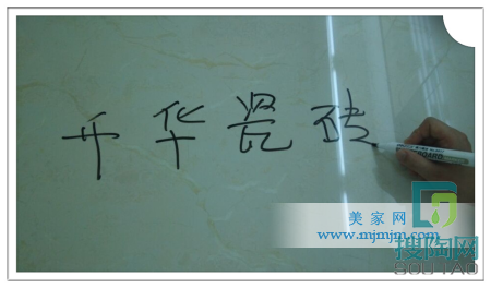 接下來讓我們看看這款升華臻石瓷磚的防污性能如何:小編用油性筆在這款產(chǎn)品上寫上“升華瓷磚”四字,待筆跡干透5分鐘之后,再用濕紙巾輕輕的擦拭,可以很輕易地擦掉油性筆的痕跡,表面光滑,可見耐污性良好。