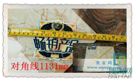 規整度的達標,可以說是優質陶瓷的最基本要求。小編用標準量尺對這款“索菲特金”的2條對角線進行測量,從結果中我們看出,索菲特金的規格相當標準,幾乎無誤差,讓人不得不驚訝。