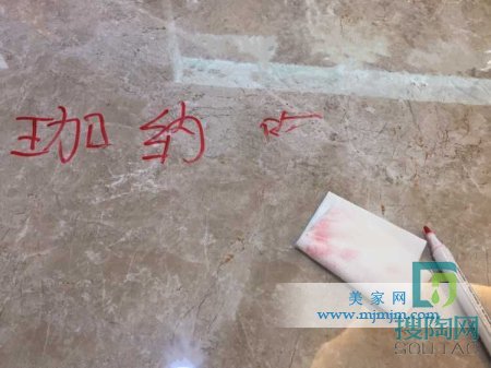 小編在這一項中選擇油性筆作測試工具,油性污漬在瓷磚凝結之后難以清洗,那么下面我們一起來見證珈納“晶拋大理石Ⅱ代”古堡灰瓷磚在抗污性的表現吧。