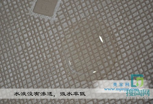 為測試瓷磚的吸水性,小編把水倒在法恩莎瓷磚臻·海紋玉背面,發(fā)現(xiàn)水液沒有任何滲透、吸收擴散的現(xiàn)象,可見這款瓷磚的吸水率非常低。