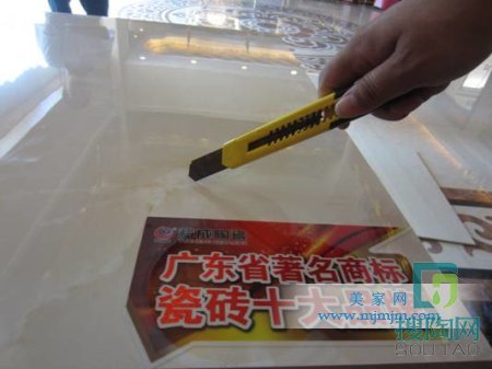 美家網小編點評:測評員用堅硬的工地專用刀用力刮了一下磚面,依然光亮如新,沒有看到任何刮痕,可以看出“悠彩石”很耐磨,那么好的瓷磚你還等什么呢?