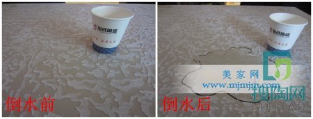美家點評:瓷磚的吸水性是考察瓷磚好壞的重要標準之一,吸水性高的瓷磚一般空隙較小,致密度比較低,相反,吸水性低的瓷磚致密度就比較高。在客廳中要選擇吸水性較低的瓷磚,因為頻繁的活動可能會帶來經常性的污濁,而稀松的磚孔很容易吸收水和污垢,從而帶來尷尬且不易清潔的痕跡。小編倒一杯水在瓷磚背面,靜置十分鐘后,發現水跡沒有明顯向外延伸和滲透的現象,因此說明這款瓷磚的吸水率很低,相信它在我們生活清潔中會帶給我們非常大的便利。