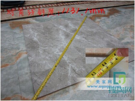 ★小編點評:根據國家標準,允許的邊長最大尺寸偏差為±0.5%,測評員帶的是卷尺,精確到0.1mm,那么具體的核算值為800㎜×±0.5%=±4㎜,這款產品,實際測量邊長均為800.0㎜,無偏差。對角線標準長度為800㎜*根號2=1131.37㎜,實際測量長度為1131.1mm,符合國家標準(注:允許有1~2mm的偏差)。可見,通利大理石瓷磚“云灰石”的規整度相當高,規格精確。