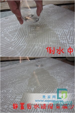 ★小編點評:小編特意過了幾分鐘再觀看水跡變化,實驗證明,上面的水跡依舊沒有變化,證明該款大理石瓷磚的吸水率較低,質量不錯。