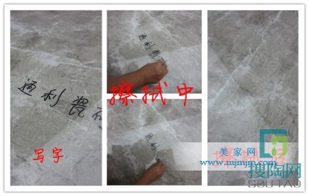 ★小編點評:通利大理石瓷磚“云灰石” 對于防污性的測試,小編給的是滿分,五顆星星。因為,在擦拭的過程中小編并沒有使用九牛二虎之力,只是輕輕的擦拭,“云灰石”上的字跡就會被擦拭掉。“云灰石”連小編的油性筆都不怕,還用怕家里的油污,牛奶嗎?媽媽們,可以為清潔這方面省下不少心。