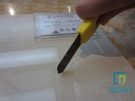 測評員用堅硬的工地專用刀用力刮了一下磚面,沒有看到任何刮痕,“白玉蘭”很耐磨。