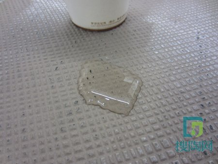 瓷磚的吸水率是衡量瓷磚的質量指標之一。一般來說,吸水率也決定了瓷磚的使用壽命。測評員經過試驗,將水倒入該款瓷磚背面后,靜置5分鐘后,上面的水跡依舊成型不擴散,無明顯滲透現象,證明該款瓷磚吸水率較低,質量較好。