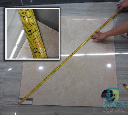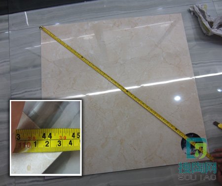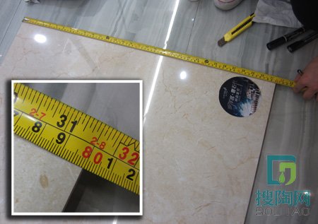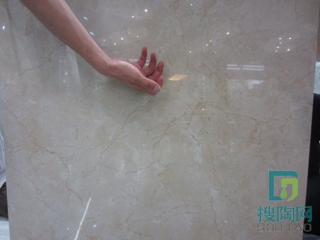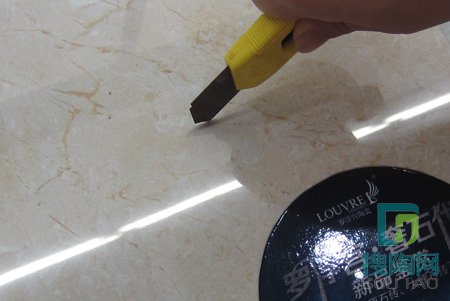 測評員用堅定的工地專用刀試刮了一下磚面,沒有看到任何刮痕,“西班牙米黃”很耐磨。