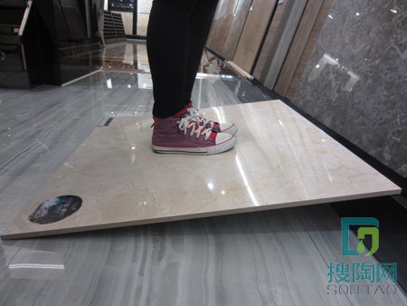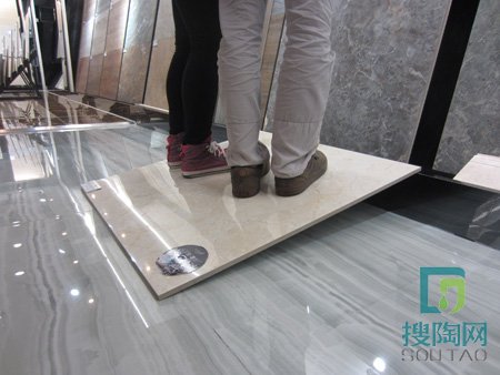 為了進一步測試此款磚的完美程度,我們將瓷磚鏤空斜架放置于13cm的邊上,測試瓷磚能否承受兩個人的重量,通過測試,瓷磚沒有出現顫動和開裂現象。說明磚片結構十分致密,承載能力不錯。