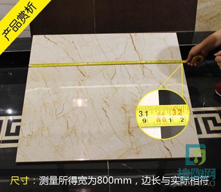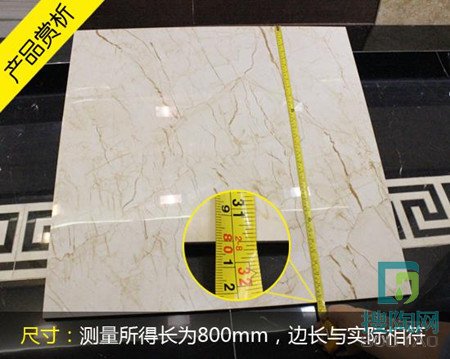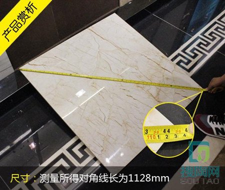 經過測量,得出瓷磚的尺寸,邊長:800㎜,對角線為1128mm,厚度為13mm。