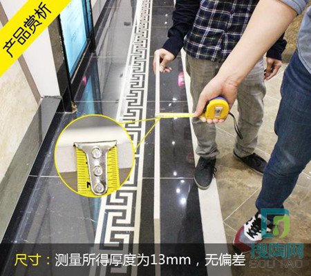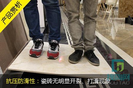 不少消費者認為拋光磚防滑效果差,其實拋光磚在防滑性能上就與啞光磚是一樣,表面具有良好的防滑性,為了作進一步驗證,評測人員將該款瓷磚鏤空斜架放置,并站在斜靠的瓷磚上面,瓷磚能承受一個人的重量,沒有出現顫動和瓷磚開裂的現象。同時,評測員在瓷磚斜面上來回走動時,瓷磚沒有出現打滑的跡象。說明磚片結構十分致密,強度和硬度都很大,承載能力和防滑能力都不錯。