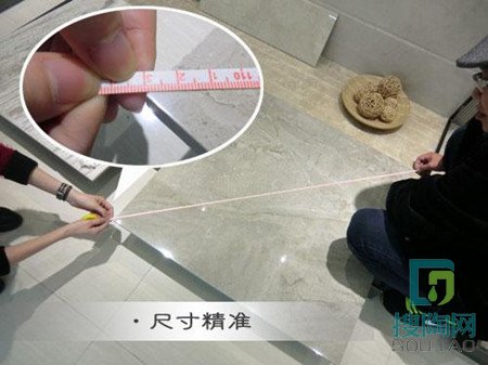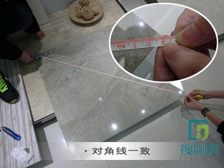 法恩莎瓷磚威尼時光有兩種規格,兩種顏色,編號分別是FCS60622P、FCS60626P、FCS80622P、FCS80626P。小編評測的這款是規格為800×800mm的FCS80626P。用軟尺分別測量瓷磚的2條對角線,測量結果均為1130mm,說明瓷磚規格精確,在瓷磚裝貼過程中,施工更方便,效果更美觀。
