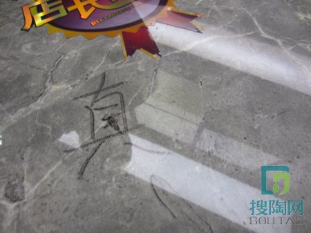 【美家小編點評】小編用黑色油性筆在“云朵拉灰”釉面寫上“真道”,寫的時候發現顏色變淺了,小編以為是筆沒有墨水了,就在白紙上寫了“真道”,結果是純黑的顏色,而在“云朵拉灰”的顏色確是那么淺,而且還很難寫上去。靜置5分鐘之后,小編用紙巾擦拭,干擦只能擦掉一點,再用水很用力擦才干凈了。工作人員說,這個永久性記錄筆,里面添加了特別的東西,所以才會這么難擦,要是一般的污漬、油漬,“云朵拉灰”都能輕易擦除。