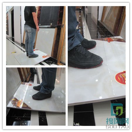 硬度點評:瓷磚架在一個高地,形成一個角度,然后我們的一個梵香瓷磚170多斤的“重量級”工作人員踩上去約一分鐘,瓷磚沒有斷裂,而有安若泰山之穩之勢。工作人員稱,“我們的瓷磚抗壓性那是一流的!”這款磚硬度確實是很大,抗壓性甚好。