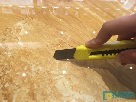 為了檢驗裕成御品•金剛釉瓷磚的耐磨性,我們用刀片在瓷磚的表面用力地來回刮,經過幾次的測試,瓷磚的表面并沒有出現刮痕。這說明瓷磚具有很強的耐磨性。