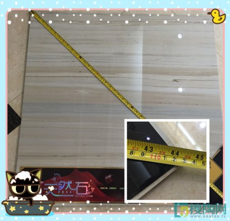 小編拿來卷尺測量了此款瓷磚的規格,測量結果:邊長800mm,對角線長113.1mm,與商家給出的尺寸相符。按照800mm*800mm的正方形計算,對角線應該是1131.3708mm。尺寸數據與實際測量數據準確無誤,是一款規格正式的好產品。