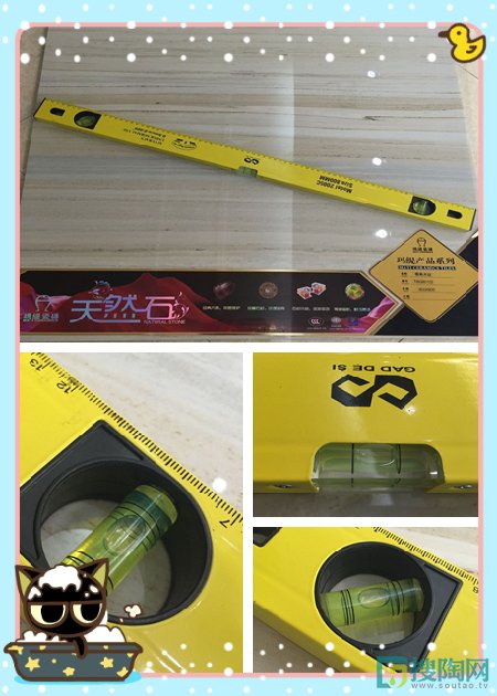 小編找來水平尺,測量這款瓷磚的平整性。哇天啊,這瓷磚好平整,尺子一放上去,三個點都在中間!不說了不說了,上圖讓大家看~
