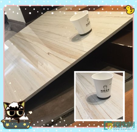 小編將瓷磚傾斜放置,并在瓷磚表面散滿清水,然后把水杯放在布滿水珠的瓷磚上,測試瓷磚的防滑性。據小編所見,水杯基本靜止不動,說明該款瓷磚防滑性能不錯。