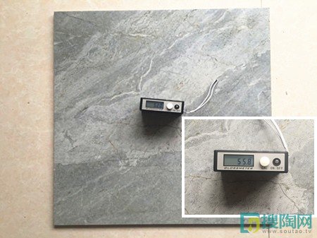 我們來測試一下這款金剛(干粒)拿鐵灰的吸水性,小編先在瓷磚背面用紅色水筆畫了個圈,再往圈里倒些水,觀察了一下之后,發(fā)現(xiàn)水并沒有向圈外擴(kuò)散的跡象。然后再放張紙巾,里面的水立刻被吸干。實(shí)驗(yàn)證明,這款磚的吸水率低,吸水率為0.08%,是一款不易吸水的瓷磚。