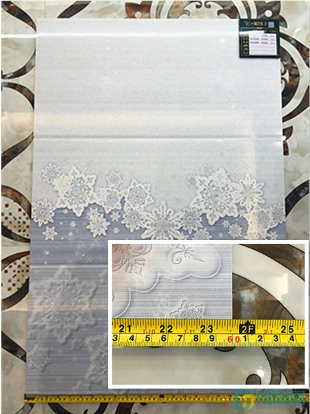 在裝修過程中,如果發現瓷磚尺寸不標準的話就會容易造成材料浪費,鋪貼起來也會形成視覺上的不美觀。這款雅系列瓷片的花片是三片組合,商家給出的數據是單片300*600,3片組合起來是900*600mm。