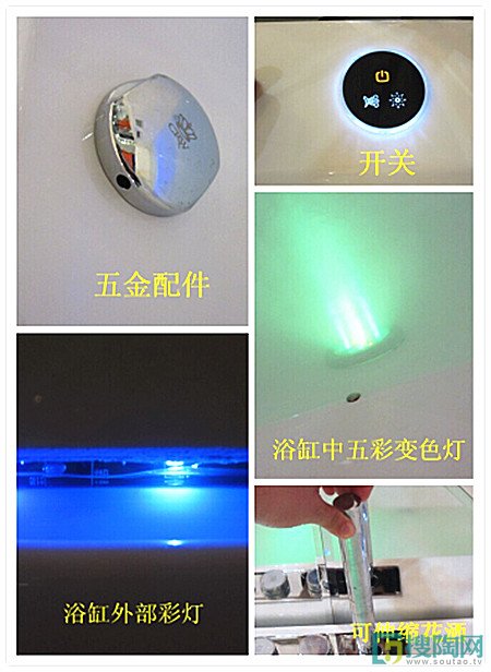 英皇“牛奶浴缸”五金配件采用304不銹鋼,旁邊是隱藏式控制面板,花灑可伸縮,可根據家中具體的情況設置不一樣的沐浴效果,靠背弧度設計符合人體工程學,讓使用者坐得更穩,不易因氣泡的推力而偏離原本的位置,浴缸出水口寬大,浴缸中的燈光隨著時間而變換不一樣的顏色,給人以夢幻的感覺,而外部的彩燈選的是節能燈,在享受美容浴的同時,也不用因為費電而擔心!