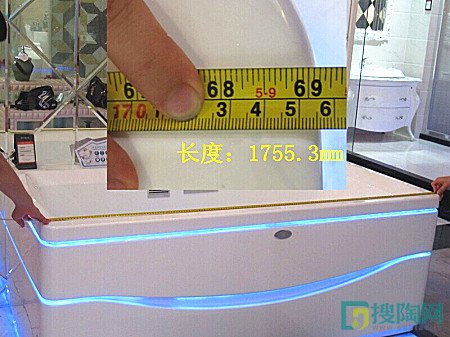 經過測量,這款牛奶浴缸的尺寸是:1755.3*845.9*682.1mm。標準尺寸為長1750*850*650mm。由于浴缸本身設計上有圓弧形,在測量位置不同,結果也會有誤差。經檢驗,英皇衛浴的這款牛奶浴缸符合規格尺寸。