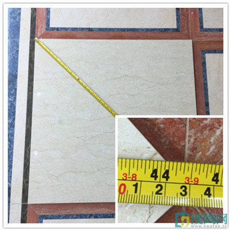 新皇家米黃的規格有兩種:800*800、600*900,美家測評員今天測的是800*800規格的,我們用標準的卷尺量度瓷磚的規格,確實如資料所說的尺寸,從而看出大將軍陶瓷切割瓷磚的準確與細膩。就如他們企業的文化標語那樣“過程決定結果,細節決定成敗”,只有把細節做好,才能打造出一批又一批美觀大氣的瓷磚,規格不統一的產品只會成為一堆無用功的廢品。