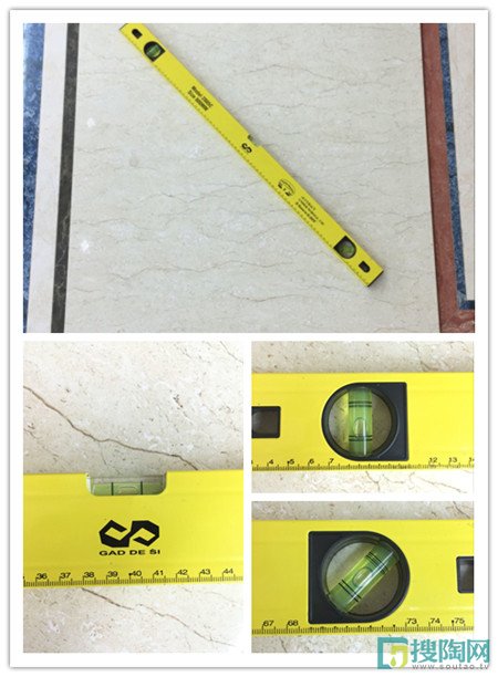一塊好的瓷磚無論是鋪在地上還是貼在墻上,它的平整度至關重要,平整度不過關就會造成日后房屋出現空鼓、翹起等現象。我們美家測評員在新皇家米黃瓷磚上找準點,然后把水平尺放置在上面,倘若水平尺三點水珠都平均位于中間的位置,就表示這款瓷磚的平整度好。經測試得出下圖的結果,均未超出標準范圍,所以新皇家米黃瓷磚的平整度過關。