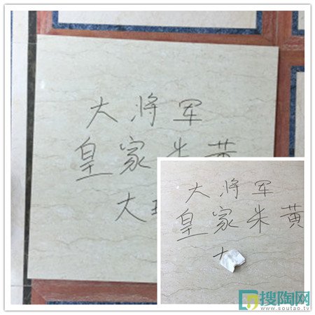 瓷磚的防污性對于家居衛生極為重要。良好的防污性能使瓷磚歷久常新,方便清潔,省時省力。測評員用油性筆在瓷磚上寫下產品名稱,靜止幾分鐘后,再用紙巾輕輕擦拭,幾乎不留痕跡。說明新皇家米黃的防污性能強。