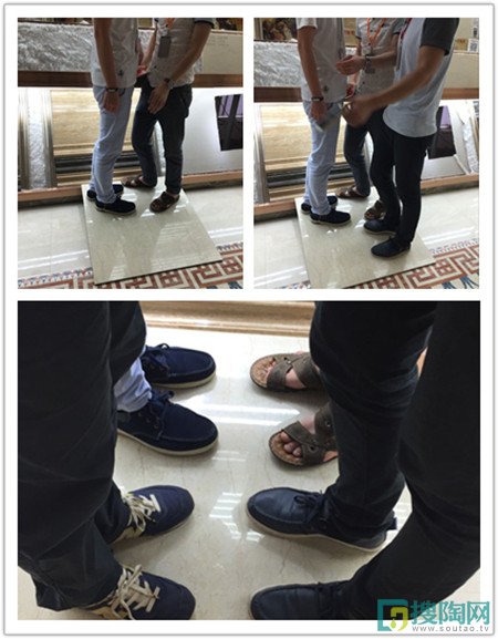 瓷磚的抗壓性就是指瓷磚的破壞程度??箟盒阅懿?,容易導致瓷磚在使用時出現開裂、斷裂的現象,影響美觀也影響安全。美家測評員先把瓷磚傾斜放置,形成三角形的中空,然后找了幾個成年人站上去,先是兩個人再然后是三個人,瓷磚也沒有出現開裂的現象,最后直接站上了4個成年男人,瓷磚還是完好無損,說明新皇家米黃的抗壓能力十分好。