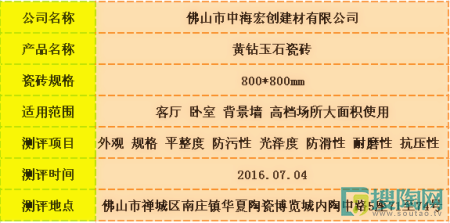 美家測評團來到位于中國著名的陶瓷之都,廣東省佛山市南莊鎮的中海宏創陶瓷,佛山市禪城區南莊鎮華夏陶瓷博覽城內陶中路5座71至74號。華夏陶瓷城內的中海宏創陶瓷,為大家測試的是來自中海宏創的黃鉆玉石瓷磚,金黃色的外表給人想麥田般的清新自然和生活,又像稻麥一樣的貼近生活。清晰干凈的紋理有力而流暢的沖擊著富有質感的底紋。麥田色系的瓷磚,給人親近自然的感覺,用于家居裝修也是在適合不過,清新自然舒暢的感覺從進家門的一刻,便隨之而來。