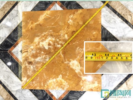 測試的這款瓷磚尺寸為800*800mm的方形瓷磚,根據企業提供的瓷磚規格是800*800mm,小編使用標準尺子量度,尺寸為800*800mm,斜角線為1131mm測試結果相當符合標準,毫無差異。