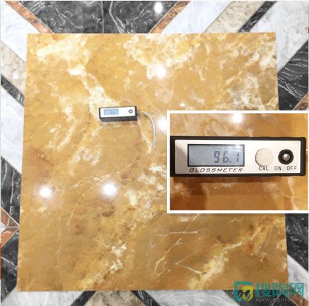 歷久常新的瓷磚,不僅能為家里增添了美,還能使瓷磚“青春常駐”,對于少有更換的瓷磚而言,質量肯定不在話下,而長久如新也是必不可少的選擇條件,那我們就來看看黃金雨石瓷磚的光澤度吧,把測試光澤度的專業儀器放在磚面上,不斷的移動,使儀器自動產生平均值,而這款黃金玉石瓷磚的光澤度為96.1度,相對于大理石瓷磚而言,這款瓷磚的光澤度還是相當的高的,值得推薦哦。